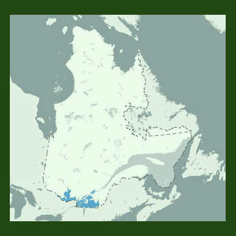 Distribution du ginseng à cinq folioles au Québec. Source: Carte de l’aire de répartition du ginseng à cinq folioles au Québec. Ministère de l’Environnement, de la Lutte contre les changements climatiques, de la Faune et des Parcs